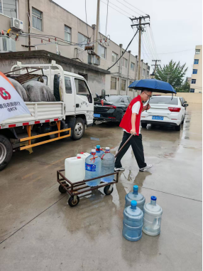 送水過程中,志愿者們一手撐傘、一手拉車,盡管道路濕滑,但大家熱情不減,絲毫沒有放緩志愿服務的步伐。為退休老人送水雖看似小事,卻切實解決了老人們生活中的實際困難,讓他們感受到社會大家庭的溫暖與關懷,也傳遞出濃濃的司法溫情。