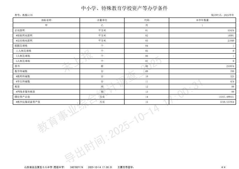 青島五十八中2025年在校師生、辦學(xué)條件數(shù)據(jù)
