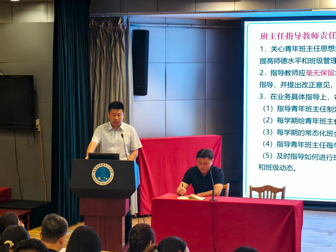 高一年級主任王麥斌宣讀了班主任業務指導的具體要求,明確了師徒雙方在德育工作中的職責。王主任指出,此次師徒結對,簽署的不僅是一紙協議,更是一份莊嚴的承諾——于師父,意味著專業的引領與責任的擔當;于徒弟,則代表著教育的傳承與自身的成長。展望未來,王主任希望師父們能夠傾囊相授、不吝賜教,徒弟們則主動求教、虛心學習,期待每一位年輕班主任都能在實踐中快速成長,早日成為學校德育工作的中堅力量。