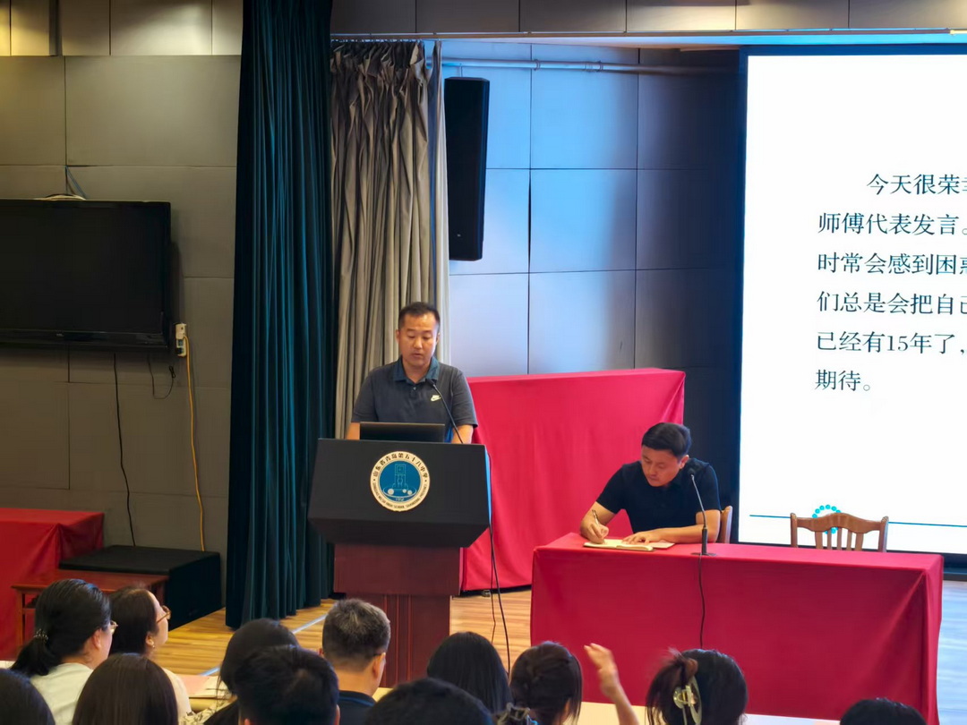 名師陳鵬先分享了自己15年以來的班主任經驗。他表示,班主任工作是一項“面對人”的工作,需要愛心、耐心,更需教育智慧與管理能力。陳老師提出,班主任應具備三種核心能力:善于捕捉日常教育契機的能力、轉化教育沖突的能力以及整合校內外資源的能力。他強調師徒結對是雙向學習的過程,年輕教師的熱情與創新也值得老教師借鑒。他代表全體師傅承諾,將全力分享經驗、支持青年教師成長,并希望新老教師互信互學、共同進步,實現“青藍相繼、薪火相傳”。