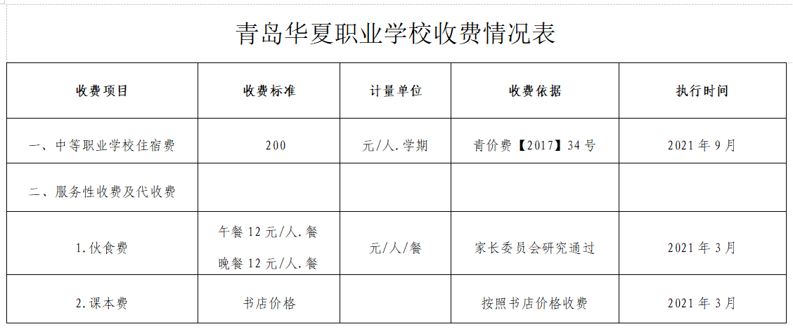 2025年青島華夏職業(yè)學(xué)校收費(fèi)情況表