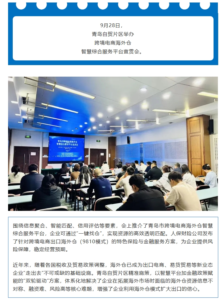 青島自貿片區舉辦跨境電商海外倉智慧綜合服務平臺宣貫會