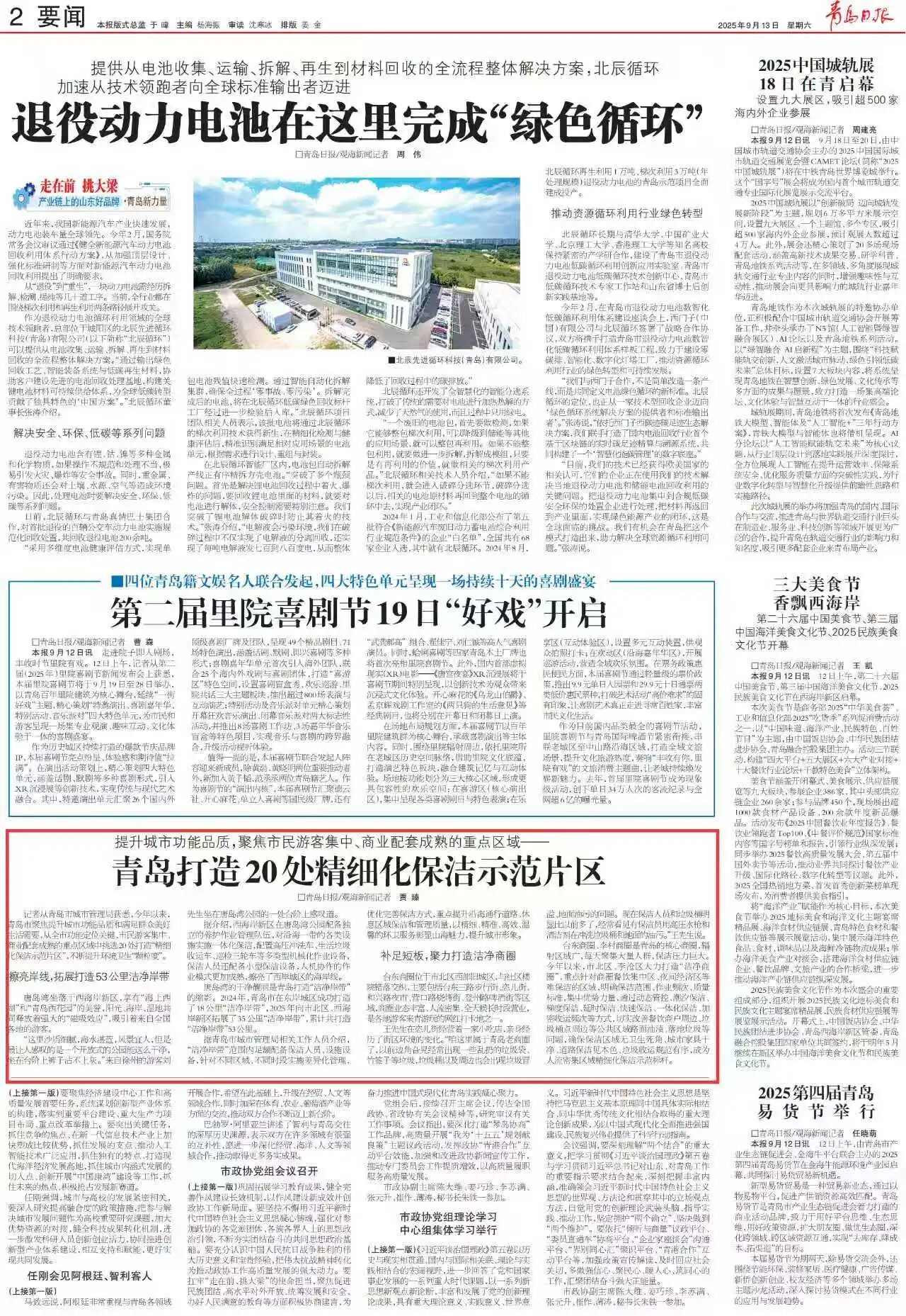 記者從青島市城市管理局獲悉,今年以來,青島市聚焦提升城市功能品質(zhì)和滿足群眾美好生活需要,從全市功能定位關(guān)鍵、市民游客集中、商業(yè)配套成熟的重點(diǎn)區(qū)域中挑選20處打造“精細(xì)化保潔示范片區(qū)”,不斷提升環(huán)境衛(wèi)生“顆粒度”。