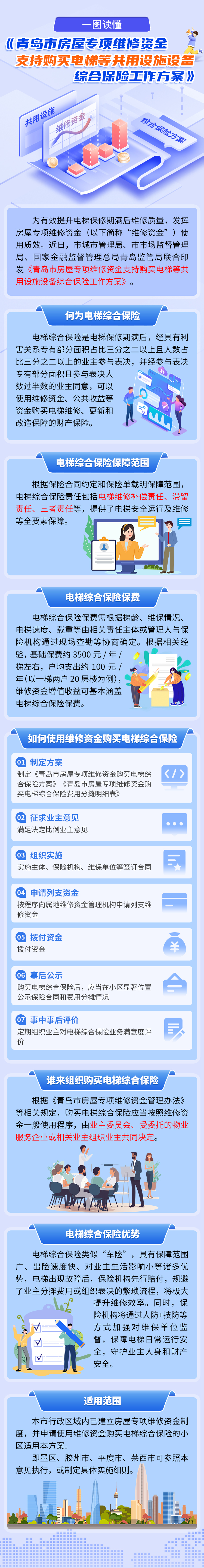 《青島市房屋專項(xiàng)維修資金支持購(gòu)買電梯等共用設(shè)施設(shè)備綜合保險(xiǎn)工作方案》一圖讀懂