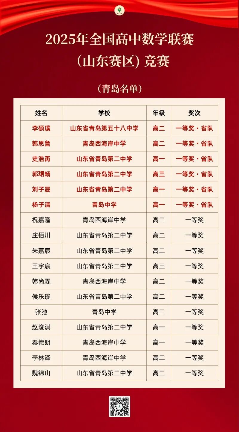 近日,2025年全國(guó)高中數(shù)學(xué)聯(lián)賽(山東賽區(qū)) 競(jìng)賽結(jié)果揭曉,共產(chǎn)生一等獎(jiǎng)90人,其中19人入選省集訓(xùn)隊(duì)。我市共有17名學(xué)生榮獲全國(guó)初賽一等獎(jiǎng),占全省一等獎(jiǎng)總?cè)藬?shù)的18.9%;其中6名學(xué)生成功入選省集訓(xùn)隊(duì),占全省集訓(xùn)隊(duì)人數(shù)的31.6%,取得了歷屆省賽最好成績(jī)。