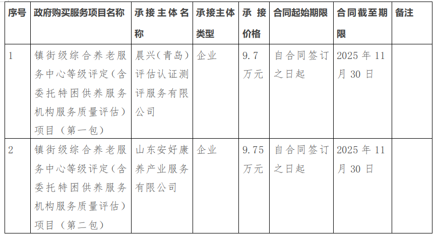 青島市民政局2025年政府購買服務項目承接主體(鎮街級綜合養老服務中心等級評定(含委托特困供養服務機構服務質量評估)