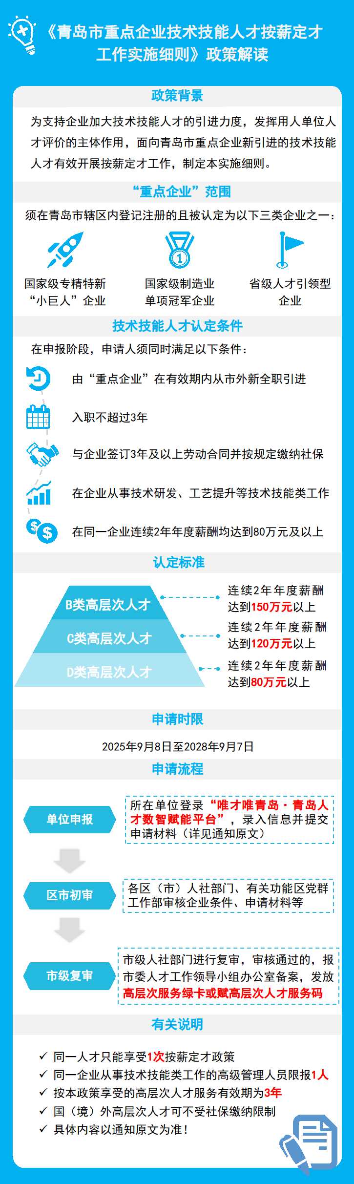 【圖文解讀】青島市人力資源和社會保障局等4部門關于印發《青島市重點企業技術技能人才按薪定才工作實施細則》的通知(青人社字〔2025〕73號)