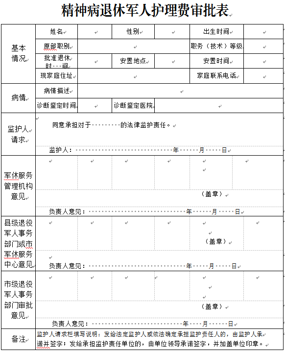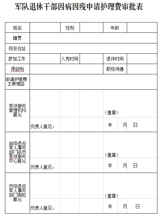 附件:1.《軍隊退休干部因病因殘申請護理費審批表》