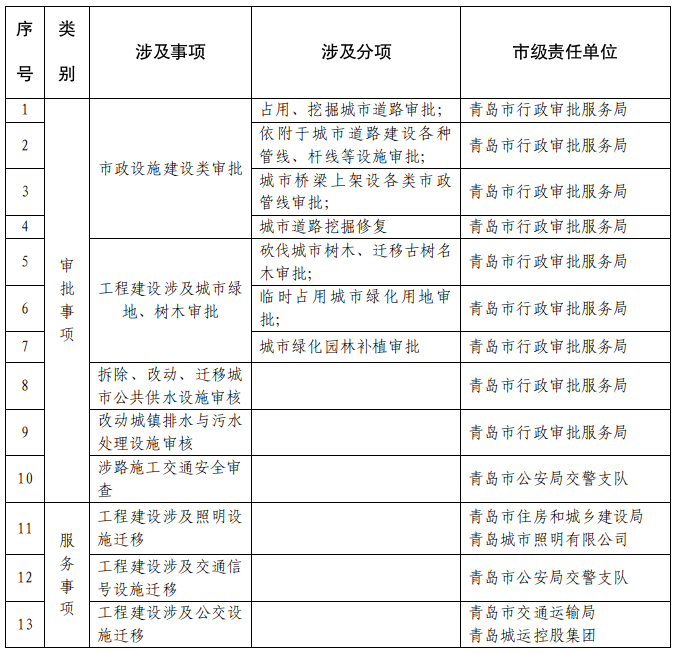 附件:1.青島市高效辦成道路挖掘修復(含道路開口)“一件事”事項清單