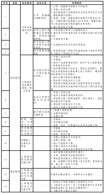 青島市高效辦成道路挖掘修復(含道路開口)“一件事”事項清單