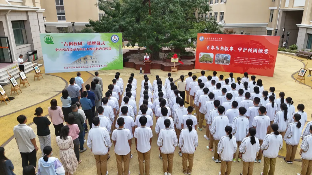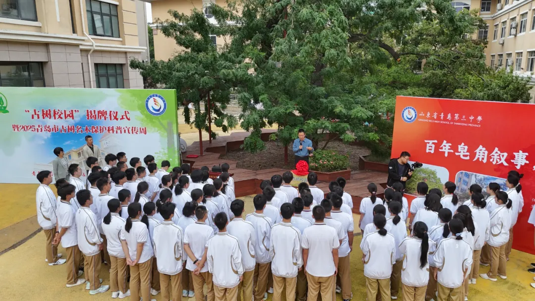 當(dāng)天下午,2025青島市古樹名木保護(hù)科普宣傳周啟動(dòng)儀式在青島三中舉行。青島市園林和林業(yè)局,古樹保護(hù)專家,青島三中教師代表、學(xué)生代表等齊聚一堂,共同為守護(hù)綠色根脈凝聚力量。