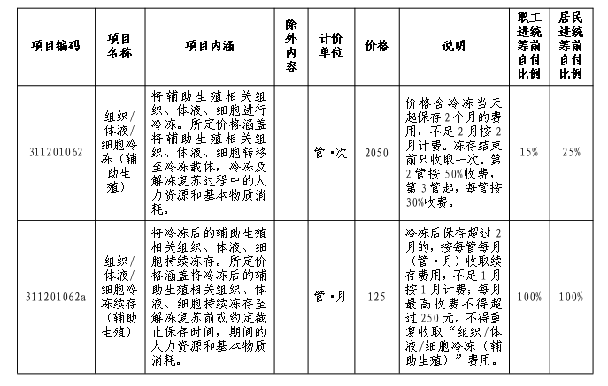 ? ? ? ?附件:組織/體液/細胞冷凍(輔助生殖)項目價格